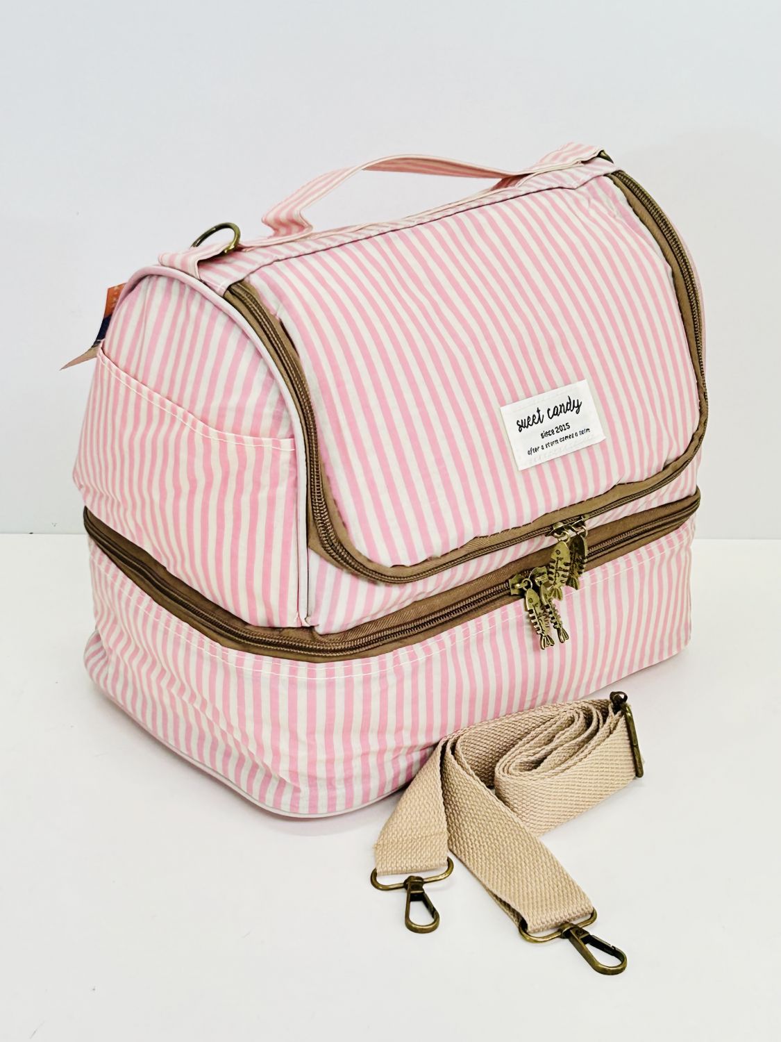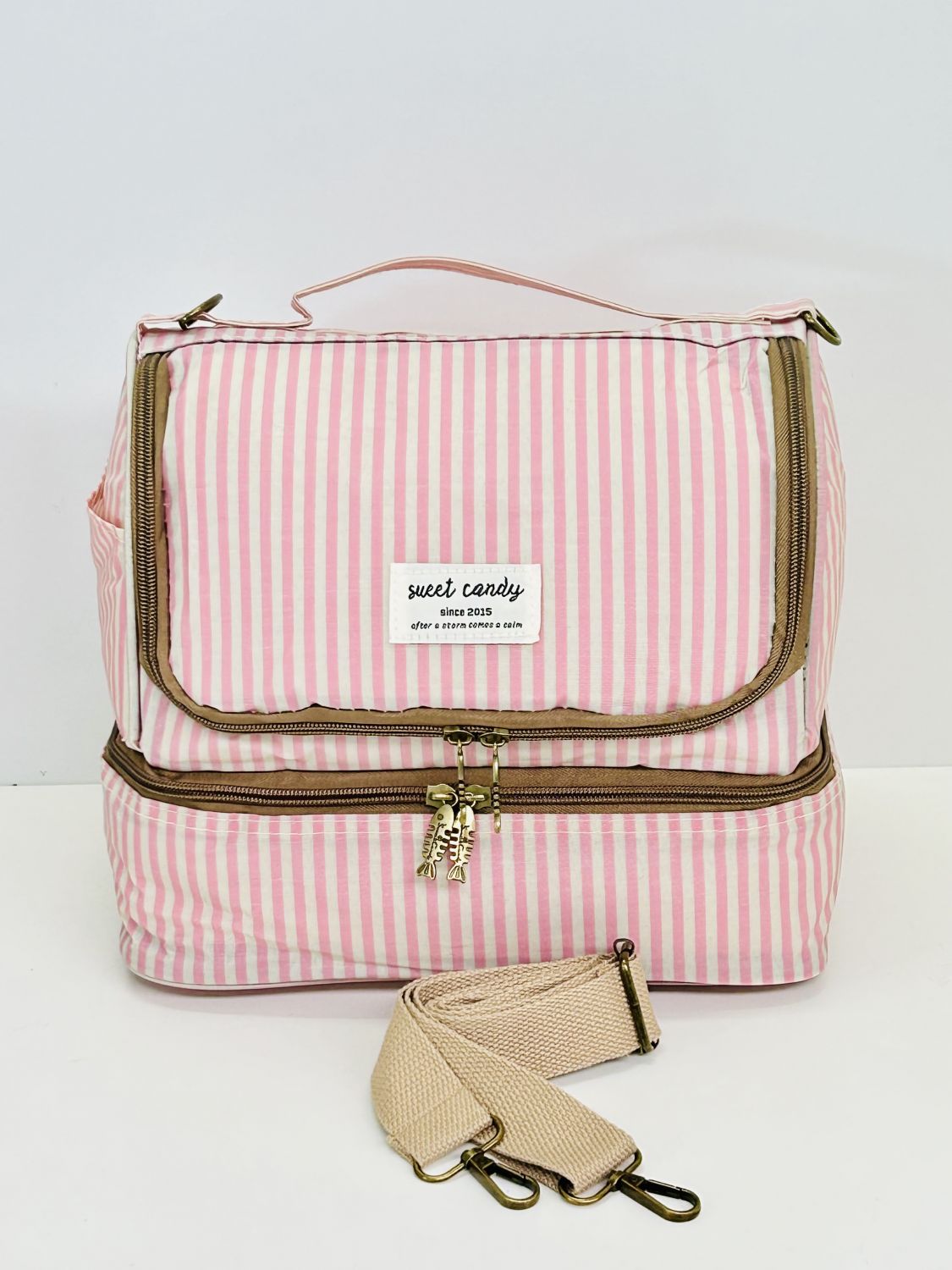 Nevera / Bolsa Térmica Sweet&Candy estampado rallas (color blanco y rosa)