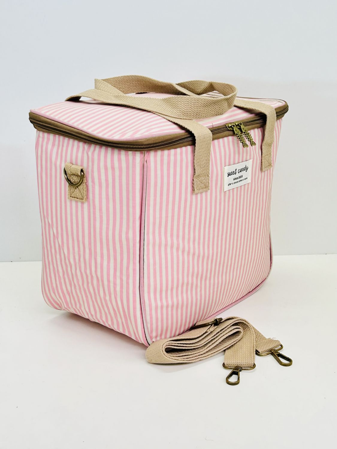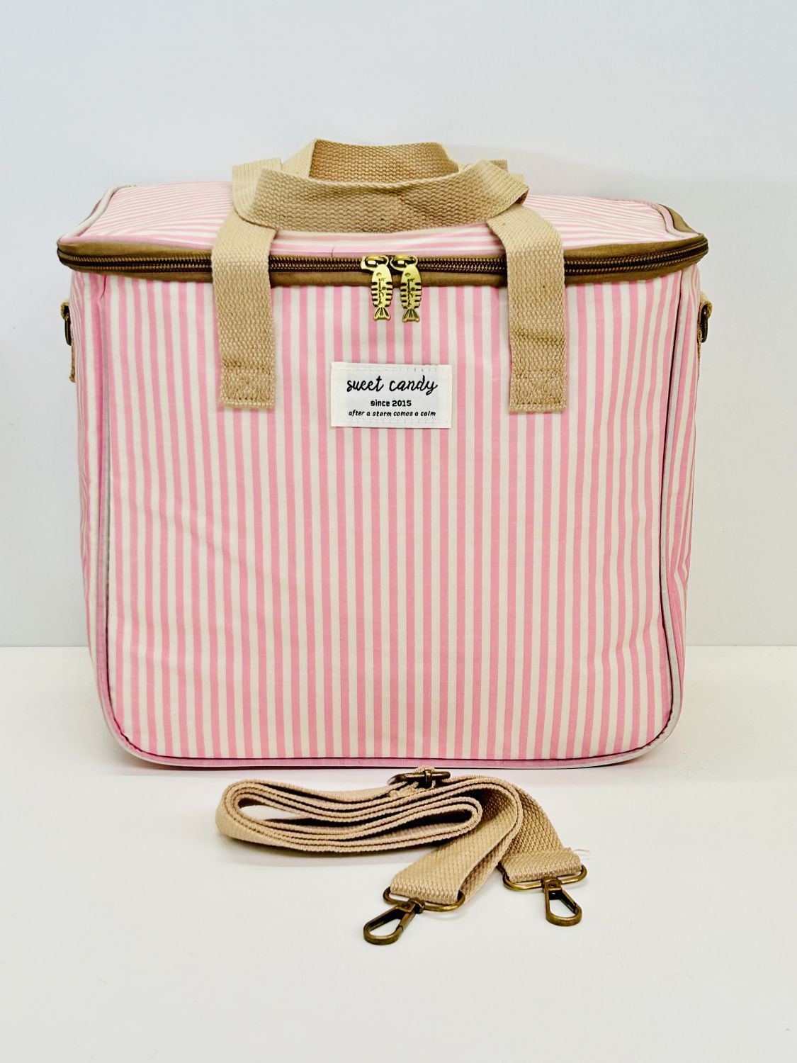 Nevera / Bolsa Térmica Sweet&Candy grande, estampado rayas (color blanco y rosa) Nevera / Bolsa Térmica Sweet&Candy grande, estampado rayas (color blanco y rosa) Nevera / Bolsa Térmica Sweet&Candy grande, estampado rayas (color blanco y rosa)