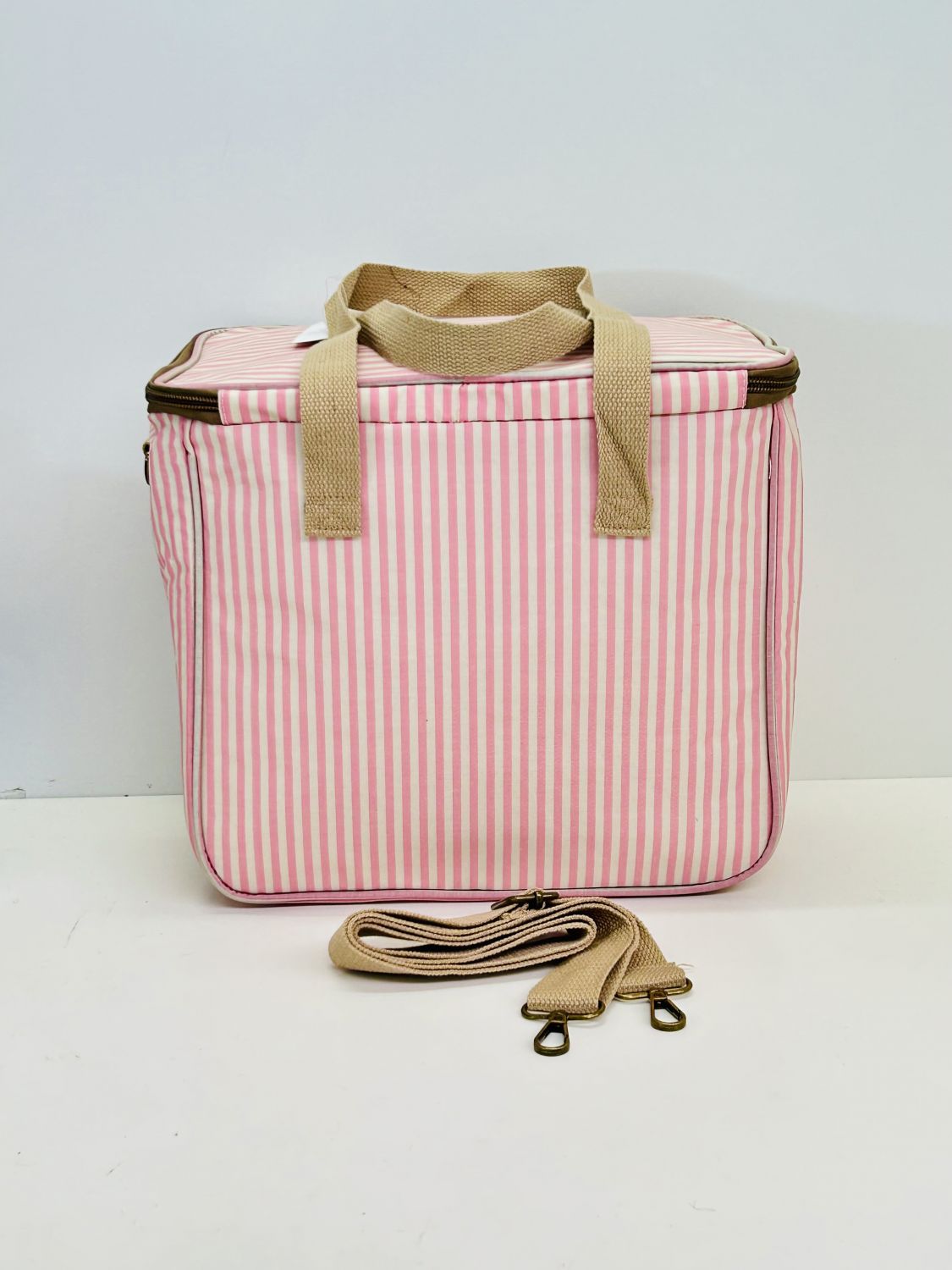 Nevera / Bolsa Térmica Sweet&Candy grande, estampado rayas (color blanco y rosa)
