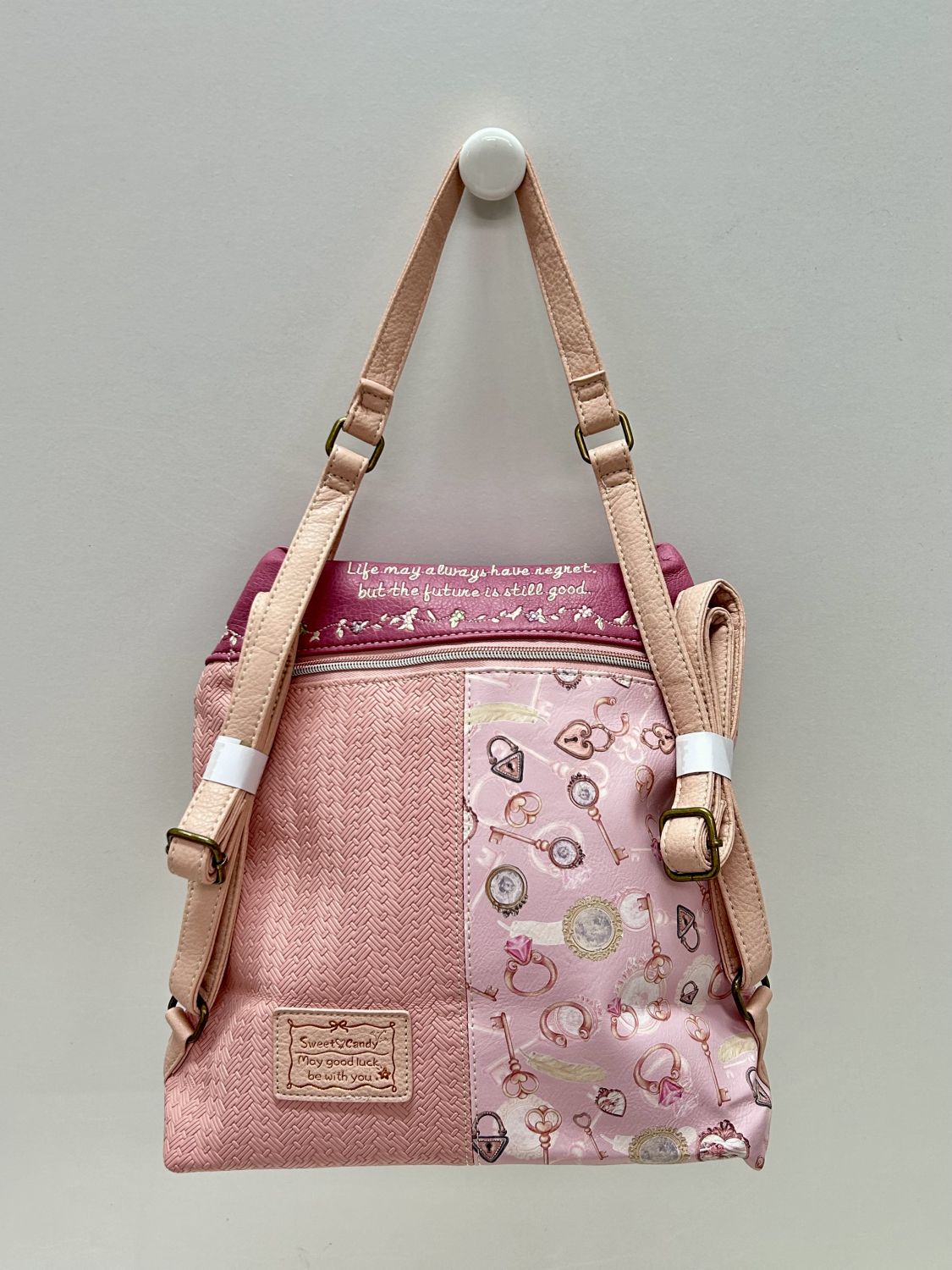 Mochila sweet candy, fabricada en polipiel, compartimento principal con cierre antirrobo, bolsillos delantero y trasero, varios compartimentos interiores para llevar todas tus pertenencias bien organizadas¡, También lleva un bolsillo interior con cierre de cremallera