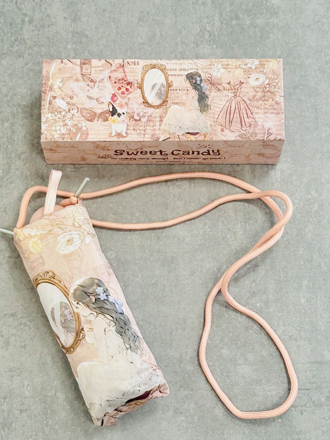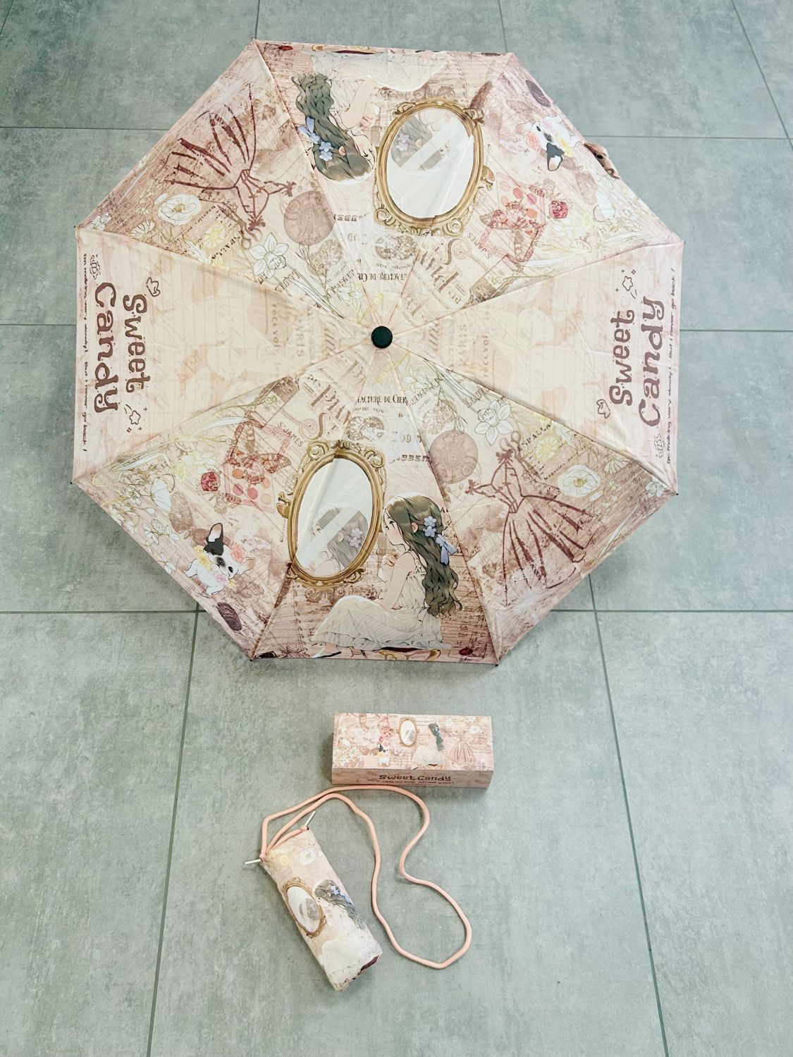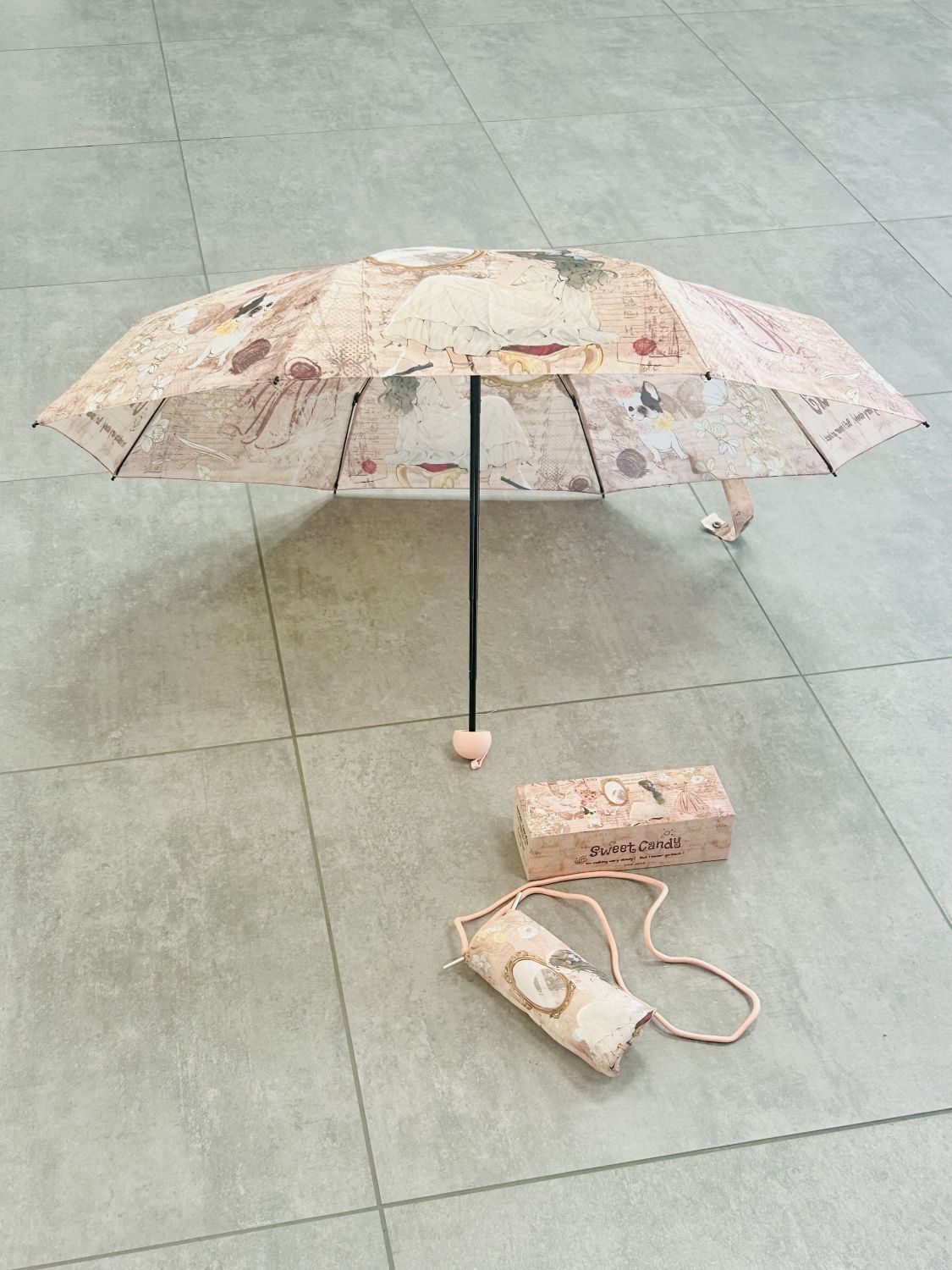 Plegable con funda con el mismo estampado que el paraguas, se presenta en caja