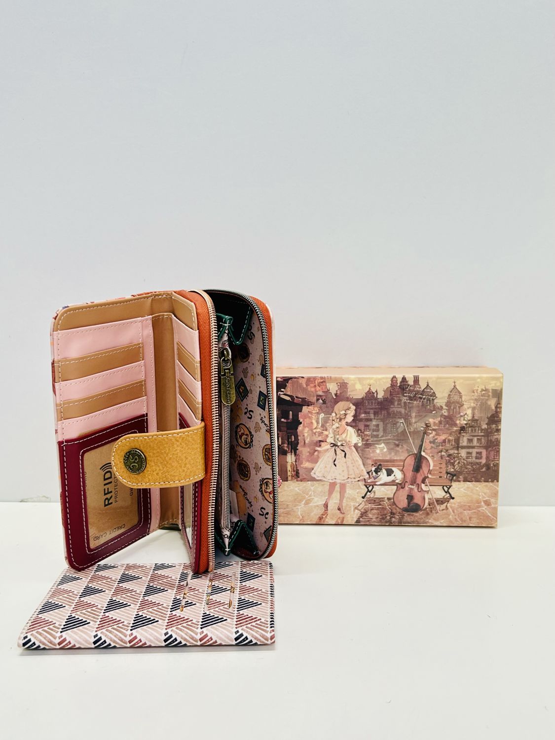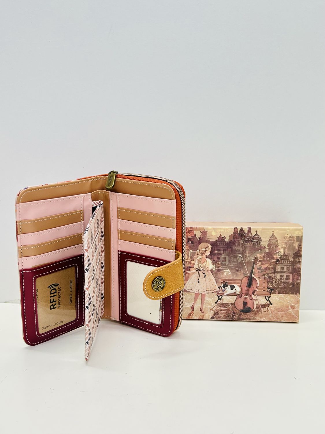 Cartera billetera Sweet Candy con tarjetero extraible, compartimento para monedas, billetes, fotos.... Fabricada en polipiel, interior forrado, se presenta en caja del mismo estampado que la billetera