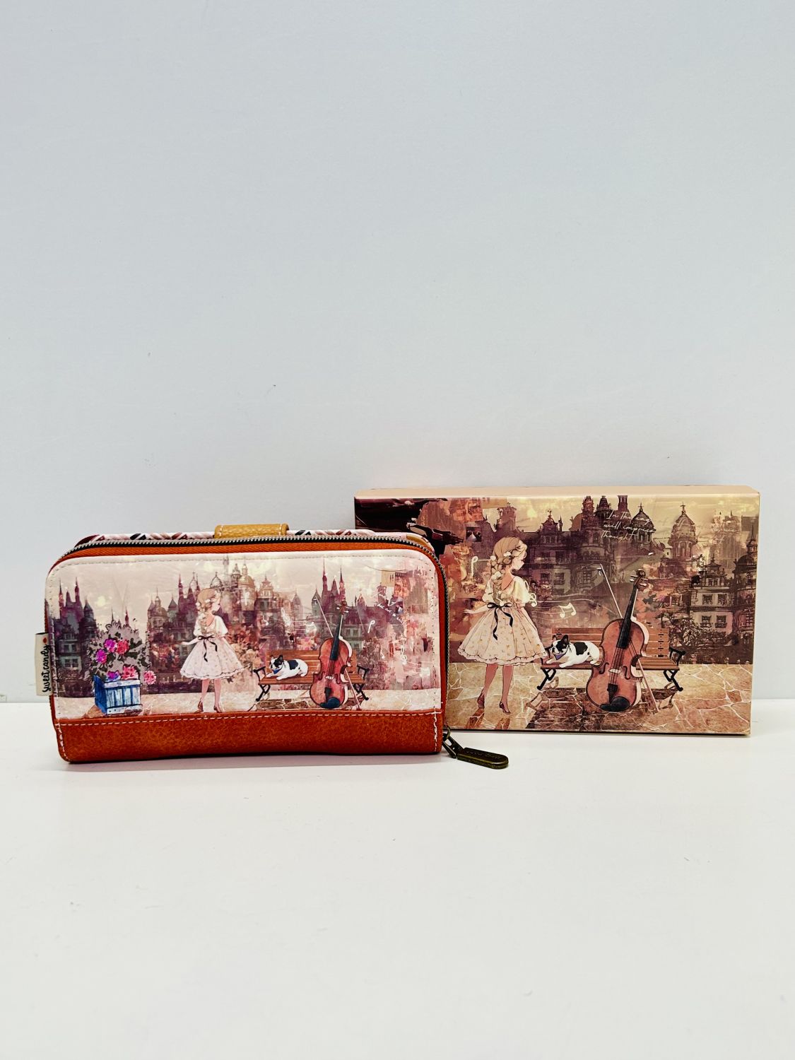 Si te gustan los motivos de color y también buscas un cartera con estilo diferente, definitivamente te gustará esta del fabricante Sweet & Candy. Está fabricado con piezas de cuero ecológico de varios colores en estilo retro, gracias a lo cual también recibió accesorios metálicos en un auténtico diseño de latón.
