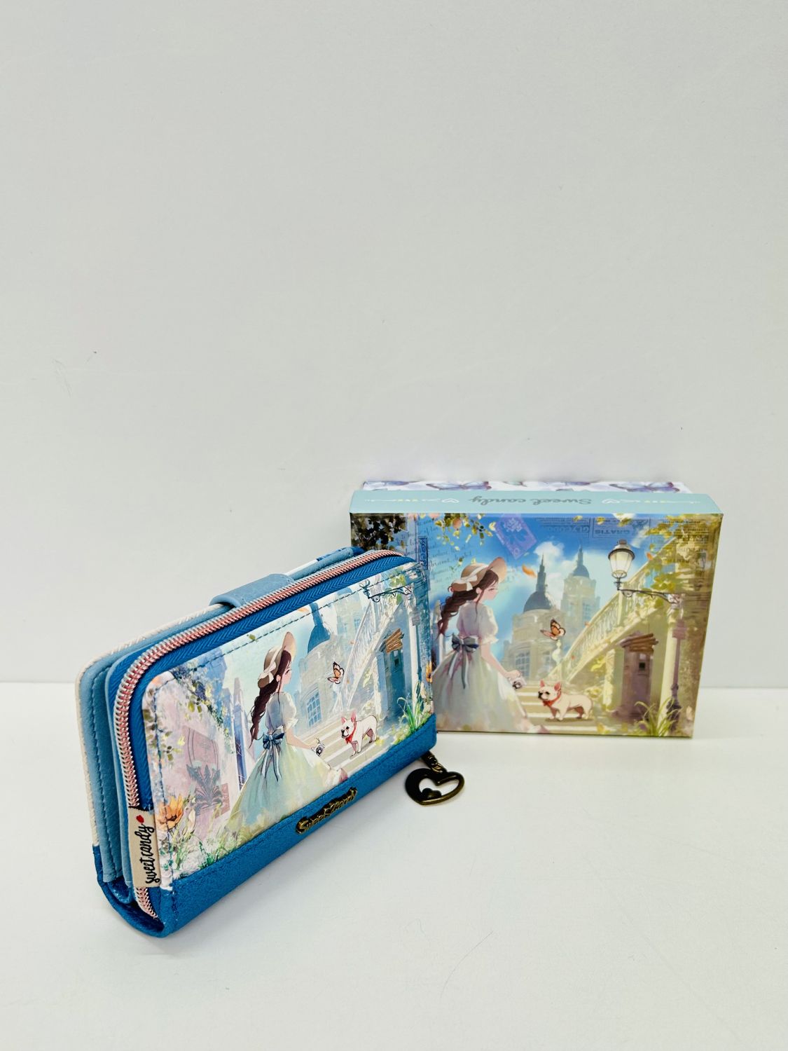 Cartera billetera Sweet Candy de Corazón con tarjetero extraible, compartimento para monedas, billetes, fotos.... Fabricada en polipiel, interior forrado, se presenta en caja del mismo estampado que la billetera